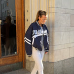 Our limited Navy Blue Vintage MLB Baseball Jacket, a perfect blend of classic design and modern charm. This jacket boasts a boxy fit that evokes a confident look. Crafted from high-quality materials.