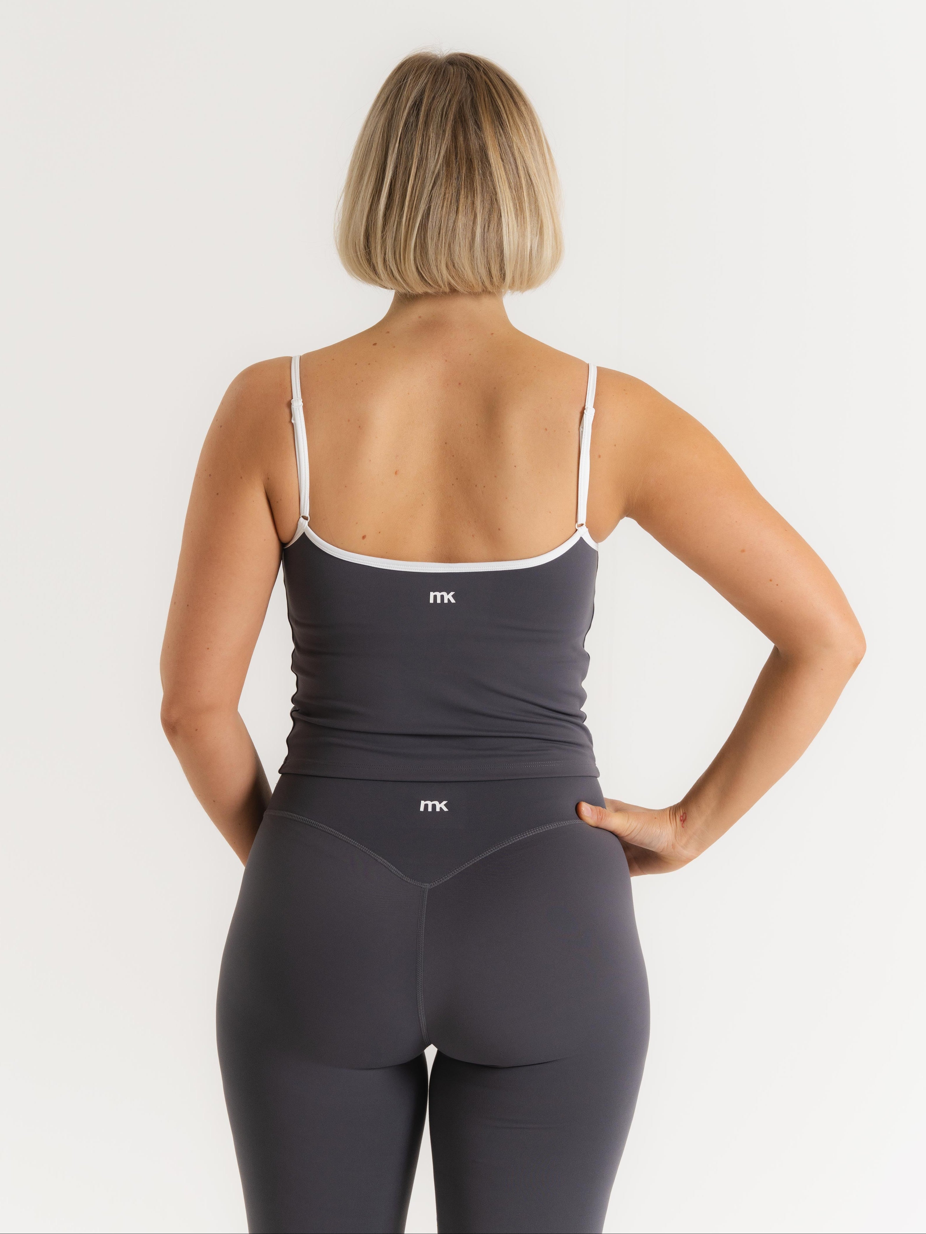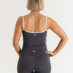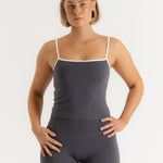 Lux Built-In Strappy Stripe Tank Top - Slate Grey/Blanc